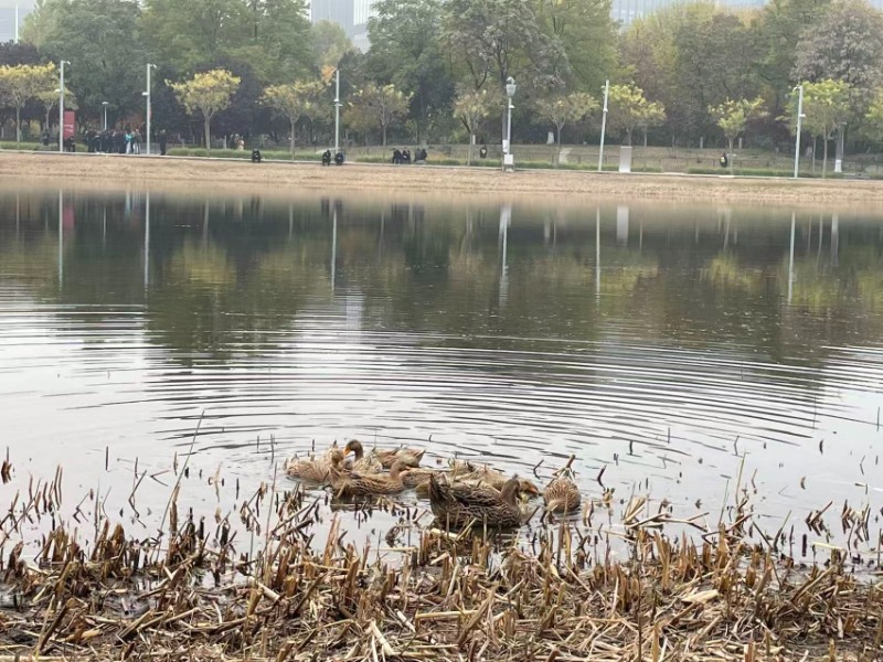 奥海是北京奥林匹克森林公园南区的核心景观水体,科荟南路和大屯北路之间的湖面是奥海的一部分。由于周围的生态环境越来越适合野生水鸟生存,在这一片公共水域上,每天都有不知名的水鸟在湖面上飞来飞去,其中有一群野鸭成为了这片水域的常住居民。当听到人们的叫声“鸭鸭鸭”,它们就会循着叫声游过去。它们在水面上的惬意姿态,使得过往的路人都停足观看。