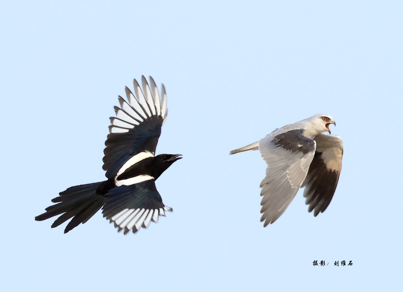 黑翅鸢可是猛禽,却被黑喜鹊追得惊慌失措,也是无语了!