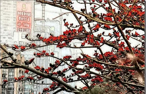 热情盛开鲜红烂漫的木棉花,也是艺术家们的常用“模特”。