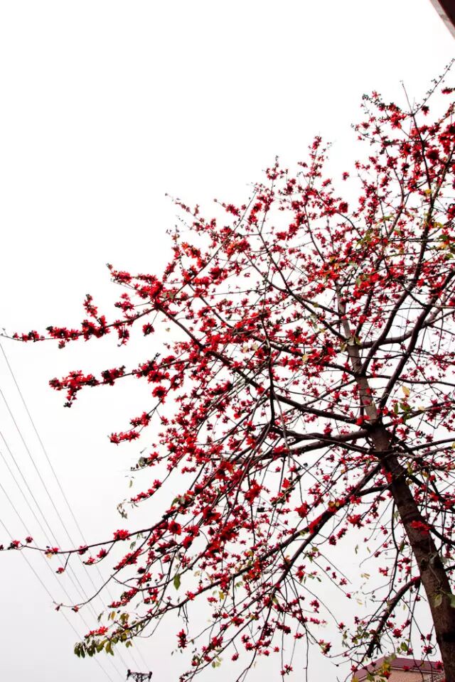 木棉开得红艳但又不媚俗,它的壮硕的躯干,顶天立地的姿态,英雄般的壮观,花葩的颜色红得犹如壮士的风骨,色彩就像英雄的鲜血染红了树梢。